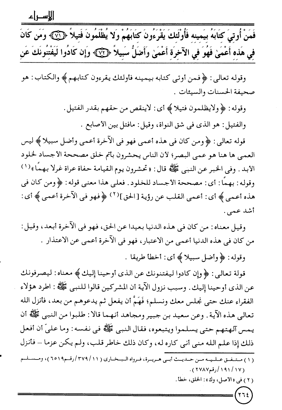 {فَمن أُوتِيَ كِتَابه بِيَمِينِهِ فَأُولَئِك يقرءُون كِتَابهمْ وَلَا يظْلمُونَ فتيلا (71) وَمن كَانَ فِي هَذِه أعمى فَهُوَ فِي الْآخِرَة أعمى وأضل سَبِيلا (72) وَإِن كَادُوا لَيَفْتِنُونَك عَن}