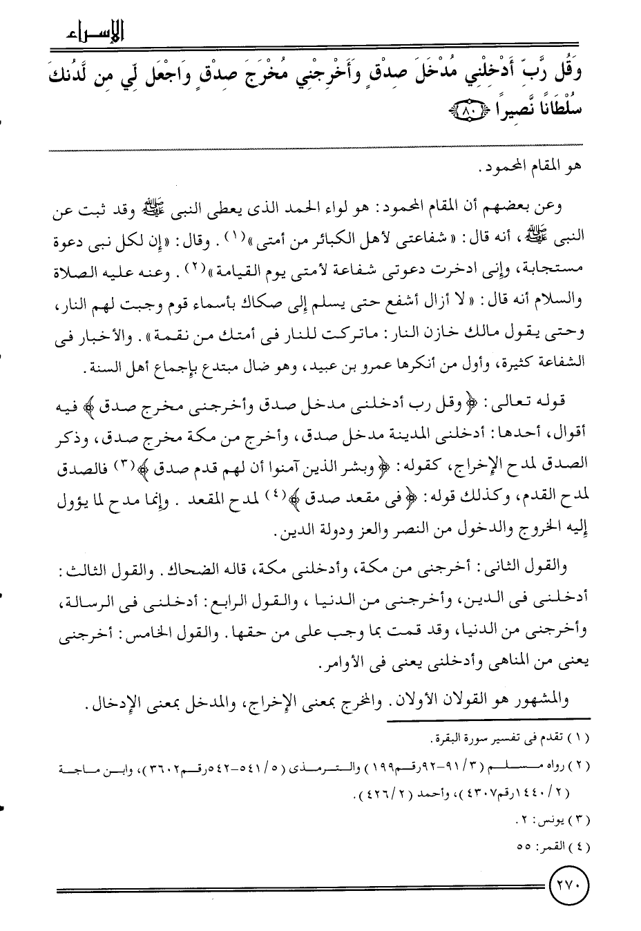 {وَقل رب أدخلني مدْخل صدق وأخرجني مخرج صدق وَاجعَل لي من لَدُنْك سُلْطَانا نَصِيرًا (80) } هُوَ الْمقَام الْمَحْمُود.