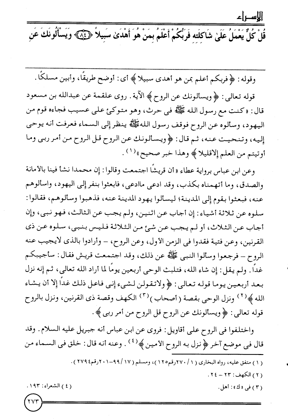 {قل كل يعْمل على شاكلته فربكم أعلم بِمن هُوَ أهْدى سَبِيلا (84) ويسألونك عَن}