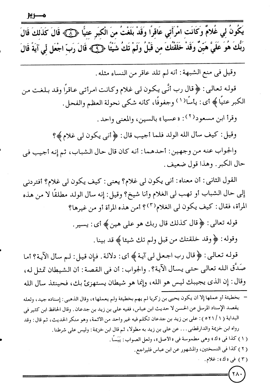 {يكون لي غُلَام وَكَانَت امْرَأَتي عاقرا وَقد بلغت من الْكبر عتيا (8) قَالَ كَذَلِك قَالَ رَبك هُوَ عَليّ هَين وَقد خلقتك من قبل وَلم تَكُ شَيْئا (9) قَالَ رب اجْعَل لي آيَة قَالَ}
