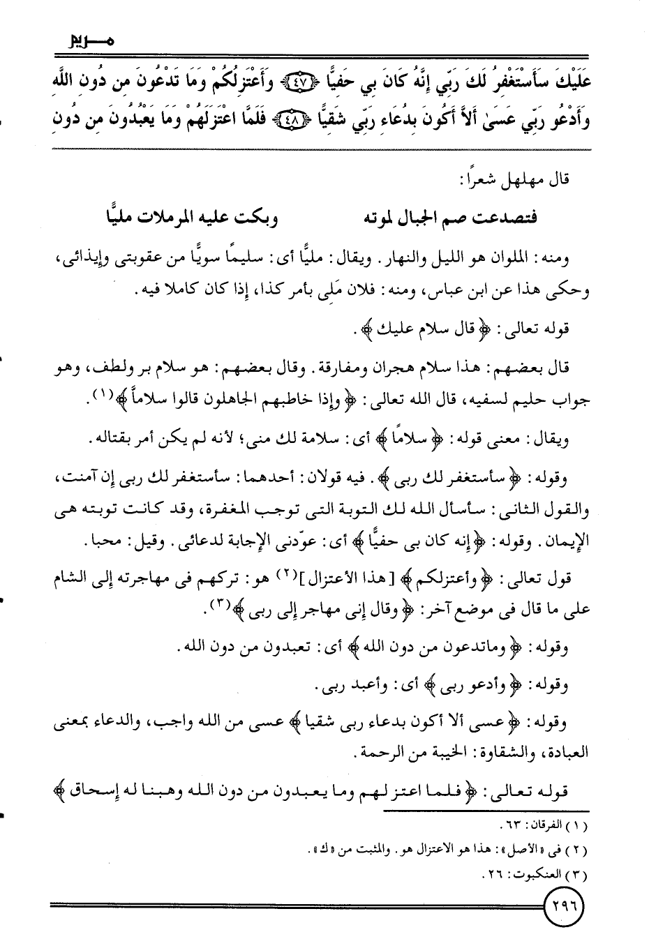 {عَلَيْك سأستغفر لَك رَبِّي إِنَّه كَانَ بِي حفيا (47) وأعتزلكم وَمَا تدعون من دون الله وأدعو رَبِّي عَسى أَلا أكون بِدُعَاء رَبِّي شقيا (48) فَلَمَّا اعتزلهم وَمَا يعْبدُونَ من دون}