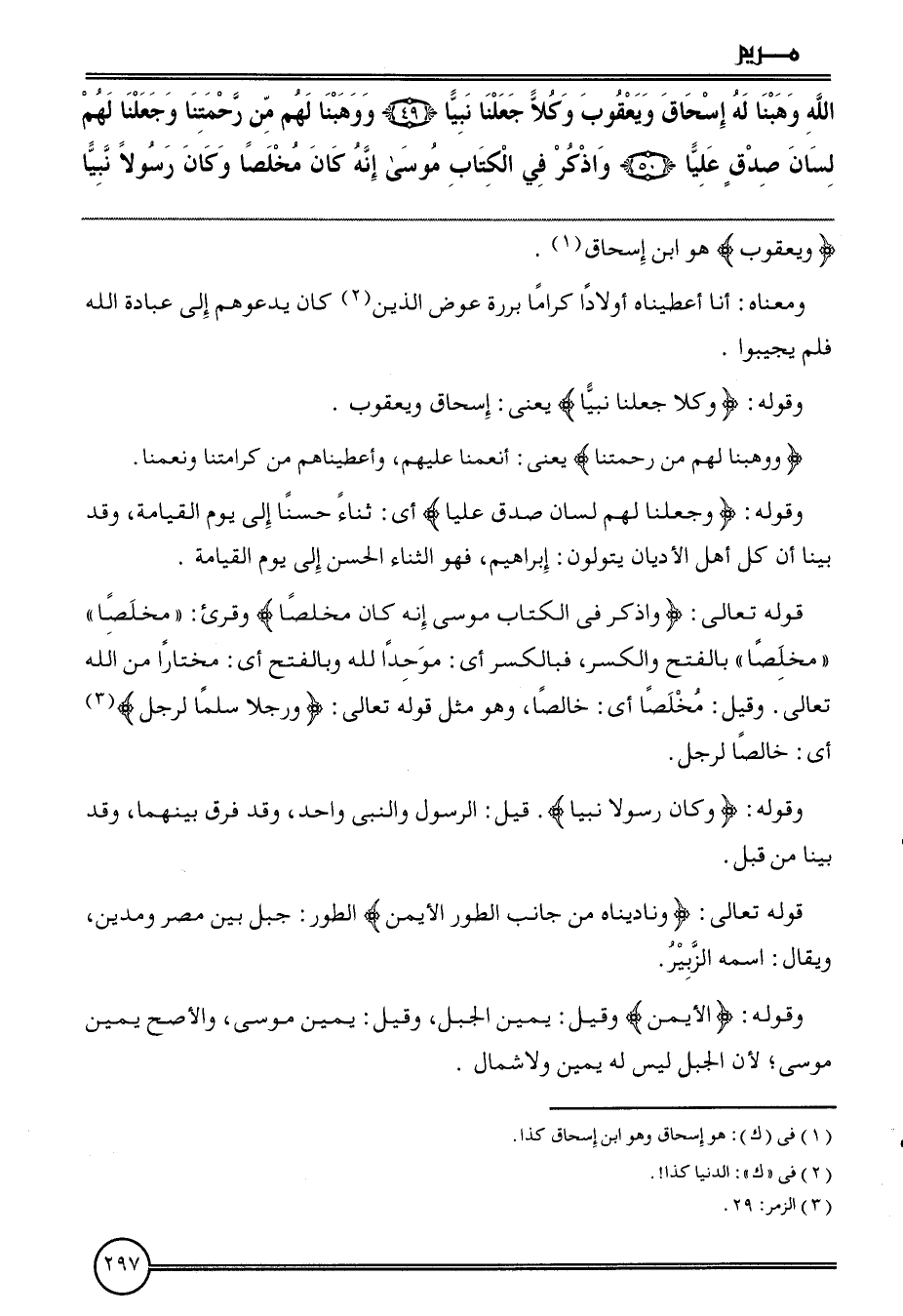 {الله وهبنا لَهُ إِسْحَاق وَيَعْقُوب وكلا جعلنَا نَبيا (49) وَوَهَبْنَا لَهُم من رَحْمَتنَا وَجَعَلنَا لَهُم لِسَان صدق عليا (50) وَاذْكُر فِي الْكتاب مُوسَى إِنَّه كَانَ مخلصا وَكَانَ رَسُولا نَبيا} {وَيَعْقُوب} هُوَ ابْن إِسْحَاق.