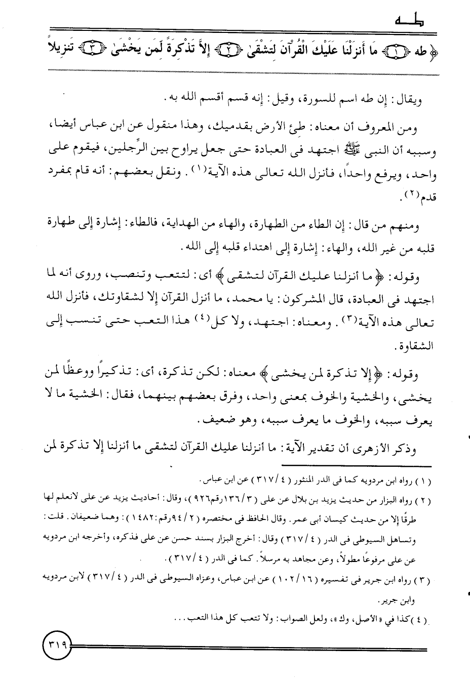 {طه (1) مَا أنزلنَا عَلَيْك الْقُرْآن لتشقى (2) إِلَّا تذكرة لمن يخْشَى (3) تَنْزِيلا}