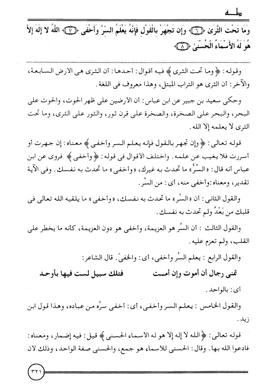 {وَمَا تَحت الثرى (6) وَإِن تجْهر بالْقَوْل فَإِنَّهُ يعلم السِّرّ وأخفى (7) الله لَا إِلَه إِلَّا هُوَ لَهُ الْأَسْمَاء الْحسنى (8) }
