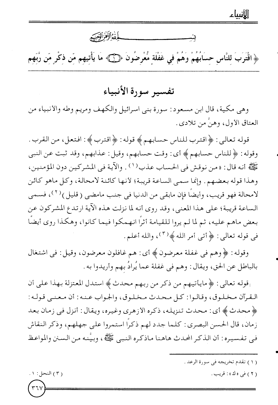 تَفْسِير سُورَة الْأَنْبِيَاء