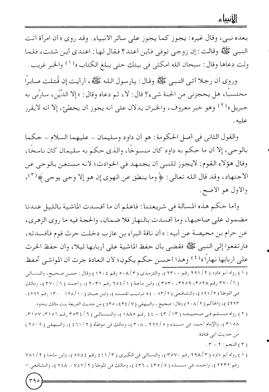 وَالْقَوْل الثَّانِي فِي أصل الْحُكُومَة: هُوَ أَن دَاوُد وَسليمَان - عَلَيْهِمَا السَّلَام - حكما بِالْوَحْي، إِلَّا أَن مَا حكم بِهِ دَاوُد كَانَ مَنْسُوخا، وَالَّذِي حكم بِهِ سُلَيْمَان كَانَ نَاسِخا، وَقَالَ هَؤُلَاءِ الْقَوْم: لَا يجوز للنَّبِي أَن يجْتَهد فِي الْحَوَادِث؛ لِأَنَّهُ مستغن بِالْوَحْي عَن الِاجْتِهَاد، وَقد قَالَ الله تَعَالَى: {وَمَا ينْطق عَن الْهوى إِن هُوَ إِلَّا وَحي يُوحى} ، وَالْأول هُوَ الْأَصَح.