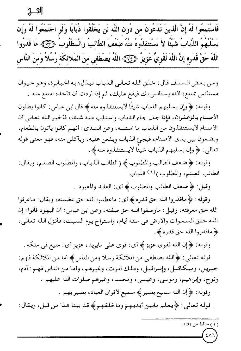 وَقَوله: {ضعف الطَّالِب وَالْمَطْلُوب} (الطَّالِب الذُّبَاب، وَالْمَطْلُوب الصَّنَم، وَيُقَال: الطَّالِب الصَّنَم، وَالْمَطْلُوب) الذُّبَاب.