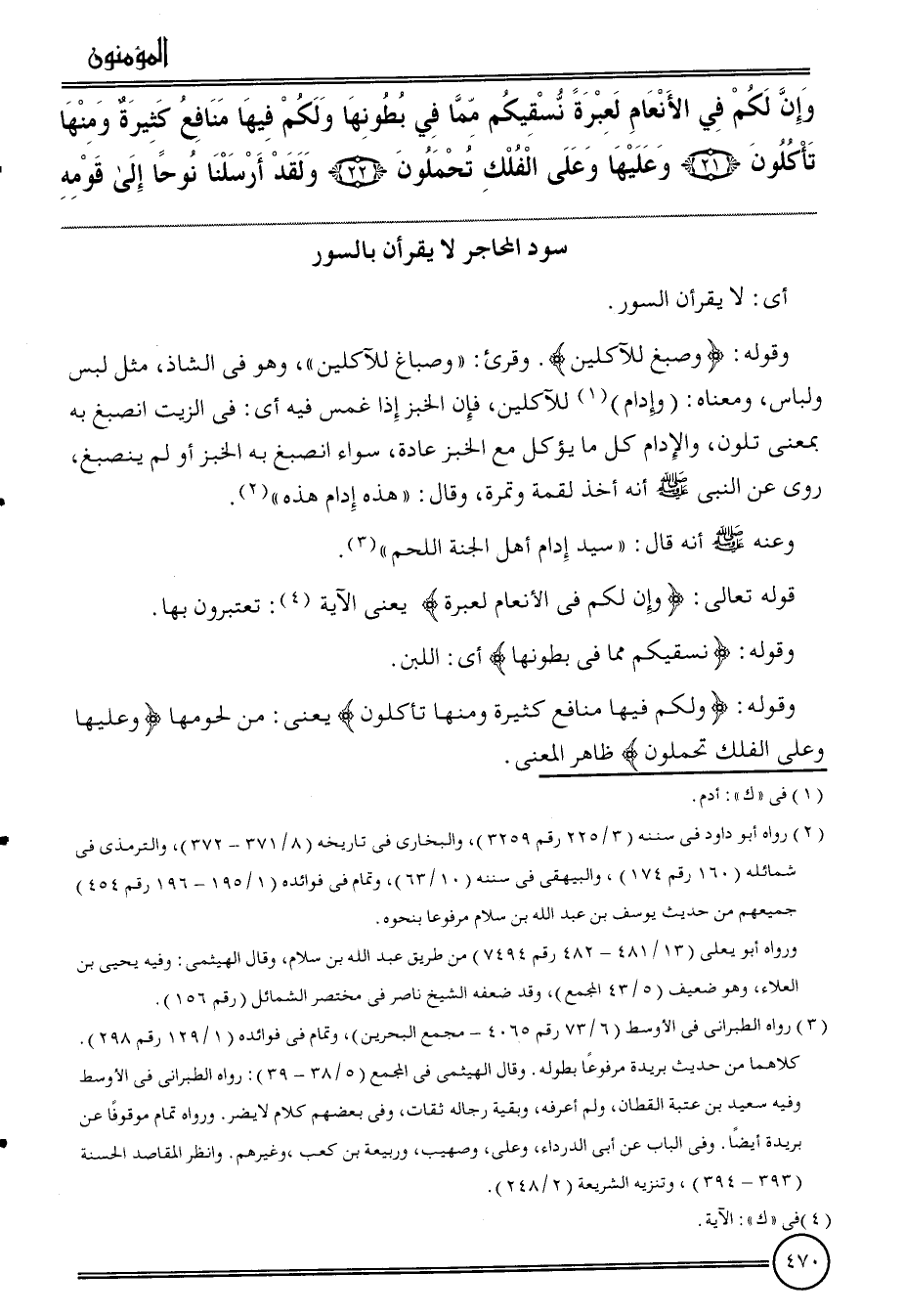 {وَإِن لكم فِي الْأَنْعَام لعبرة نسقيكم مِمَّا فِي بطونها وَلكم فِيهَا مَنَافِع كَثِيرَة وَمِنْهَا تَأْكُلُونَ (21) وَعَلَيْهَا وعَلى الْفلك تحملون (22) وَلَقَد أرسلنَا نوحًا إِلَى قومه}