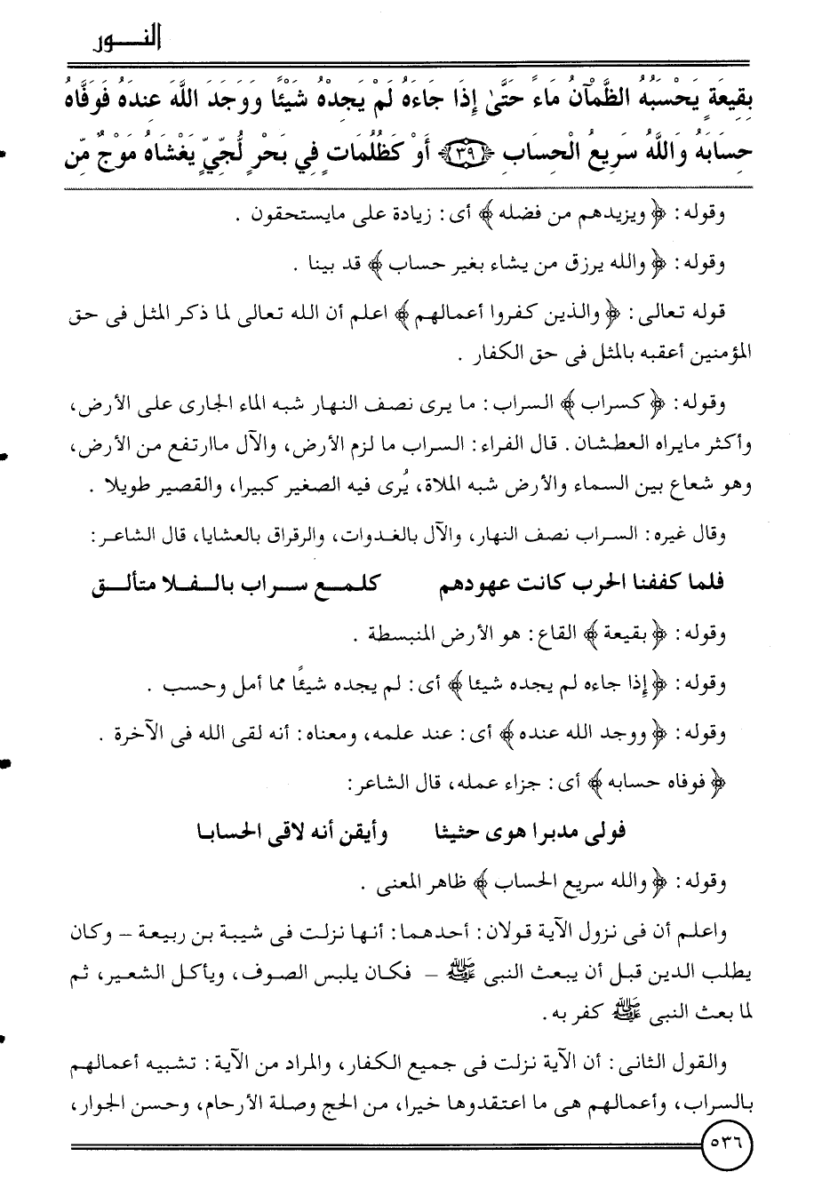 {بقيعة يحسبه الظمآن مَاء حَتَّى إِذا جَاءَهُ لم يجده شَيْئا وَوجد الله عِنْده فوفاه حسابه وَالله سريع الْحساب (39) أَو كظلمات فِي بَحر لجي يَغْشَاهُ موج من}