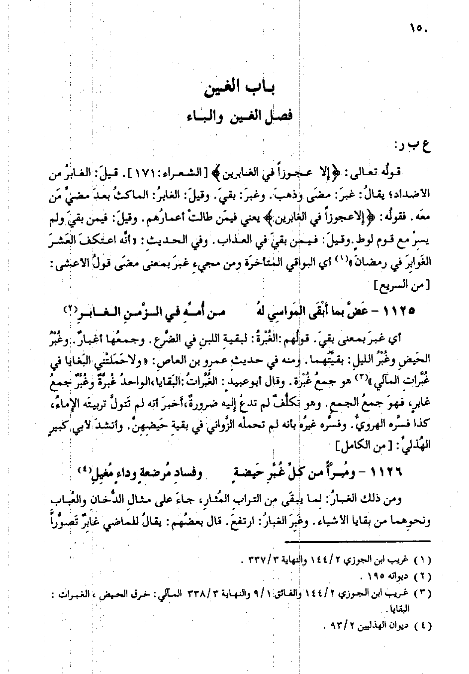 قوله تعالى: {إلا عجوزًا في الغبرين} [الشعراء:171]. قيل: الغابر من الأضداد؛ يقال: غبر: مضى وذهب. وغبر: بقى. وقيل: الغابر: الماكث بعد مضي من معه. فقوله: {إلا عجوزًا في الغابرين} يعني فيمن طالت أعمارهم. وقيل: فيمن بقي ولم يسر مع قوم لوطٍ. وقيل: فيمن بقي في العذاب. وفي الحديث: «أن اعتكف العشر الغوابر في رمضان» أي البواقي المتأخرة ومن مجيء غبر بمعنى مضي قول الأعشي: [من السريع]