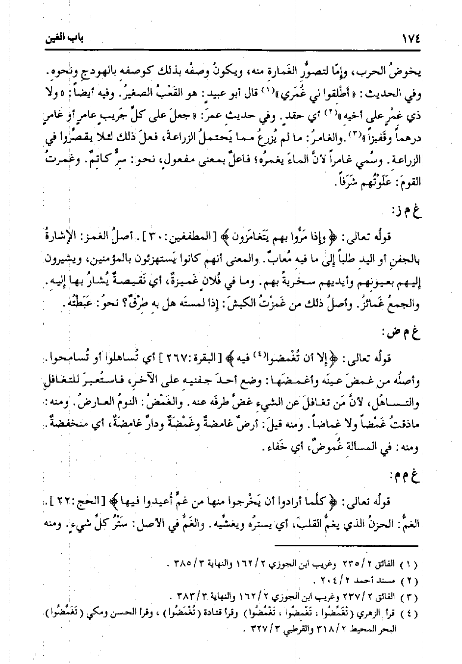 قلوله تعالى: {إلا أن تُغمضوا فيه} [البقرة: 267] أي تُساهلوا أو تُسامحوا. وأصله من غمض عينه وأغمضها: وضع أحد جفنيه على الآخر، فاستعير للتغافل والتساهل، لأن من تغافل عن الشيء غض طرفه عنه. والغمض: النوم العارض. ومنه ما ذقت غمضًا ولا غامضًا. ومنه قيل: أرض غامضة وغمضة ودار غامضة، أي منخفضة. ومنه: في المسألة غُموض، أي خفاء.