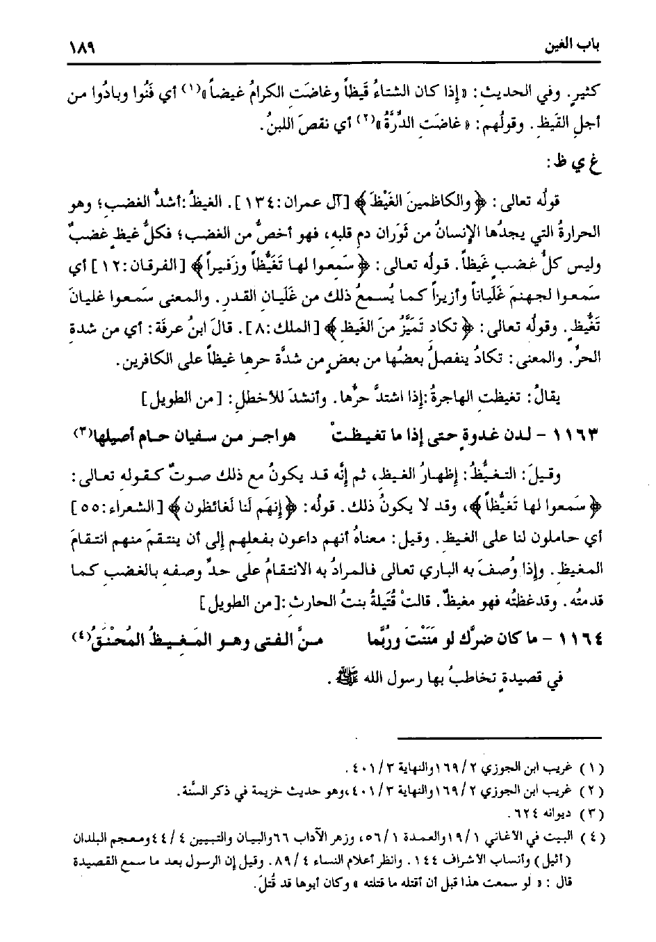 وقيل: التغيظ: إظهار الغيظ، ثم إنه قد يكون مع ذلك صوت كقوله تعالى: {سمعوا لها تغيظًا} وقد لا يكون ذلك. قوله {إنهم لنا لغائظون} [الشعراء: 55] أي حاملون لنا على الغيظ. وقيل: معناه أنهم داعون بفعلهم إلى أن ينتقم منه انتقام المغيظ. وإذا وصف به الباري تعالى فالمراد به الانتقام على حد وصفه بالغضب كما قدمته. وقد غظته فهو مغيظ. قالت قتيلة بنت الحارث: [من الطويل]