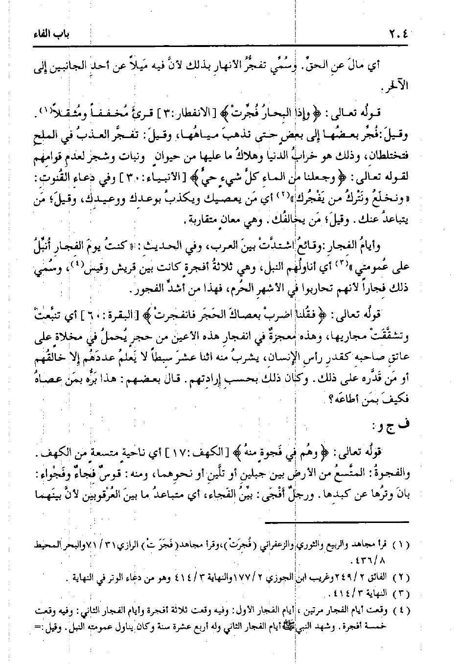 وأيام الفجار: وقائع اشتدت بين العرب، وفي الحديث: "كنت يوم الفجار أنبل على عمومتي" أي أناولهم النبل، وهي ثلاثة أفجرة كانت بين قريش وقيس، وسمي ذلك فجارًا لأنهم تحاربوا في الأشهر الحرم، فهذا من أشد الفجور.