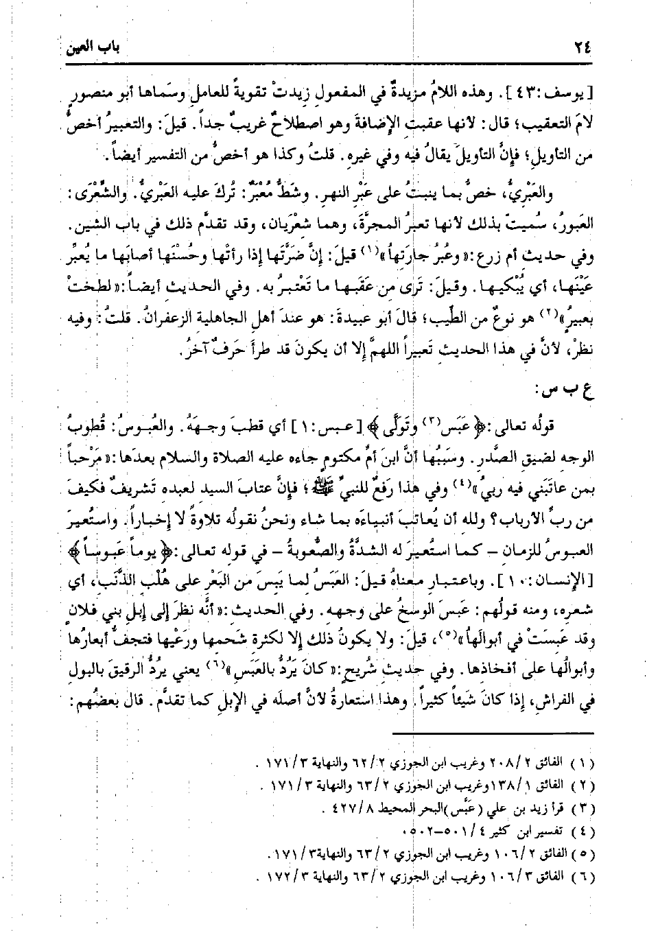 قوله تعالى:} عبس وتولى {[عبس: 1] أي قطب وجهه. والعبوس: قطوب الوجه لضيق الصدر. وسببها أن ابن أم مكتومٍ جاءه عليه الصلاة والسلام بعدها: "مرحبًا بمن عاتبني فيه ربي" وفي هذا رفع للنبي صلى الله عليه وسلم؛ فإن عتاب السيد لعبده تشريف فكيف من رب الأرباب؟ ولله أن يعاتب أنبياءه بما شاء ونحن نقوله تلاوًة لا إخبارًا. واستعير العبوس للزمان - كما استعير له الشدة والصعوبة - في قوله تعالى:} يومًا عبوسًا {[الإنسان: 10]. وباعتبار معناه قيل: العبس لما يبس من البعر على هلب الذنب، أي شعره، ومنه قولهم: عبس الوسخ على وجهه. وفي الحديث: "أنه نظر إلى غبل بني فلان وقد عبست في أبوالها"، قيل: ولا يكون ذلك إلا لكثرة شحمها ورعيها فتجف أبعارها وأبوالها على أفخاذها. وفي حديث شريحٍ: "كان يرد بالعبس" يعني يرد الرقيق بالبول في الفراش، إذا كان شيئًا كثيرًا. وهذا استعارة لأن أصله في الإبل كما تقدم. قال بعضهم: