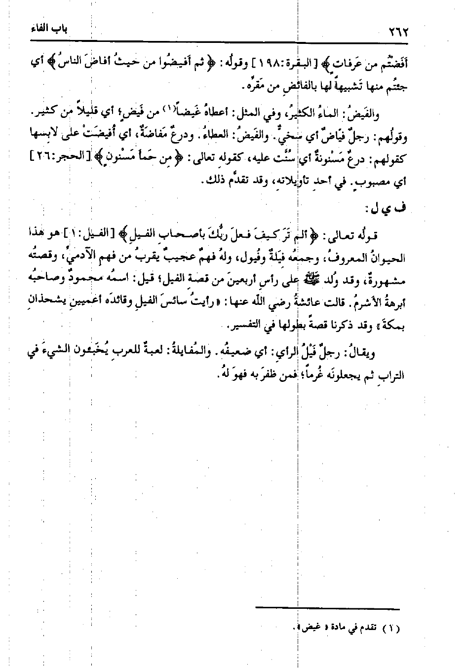 أفضتم من عرفاتٍ} [البقرة: 198] وقوله: {ثم أفيضوا من حيث أفاض الناس} أي جئتم منها تشبيهًا لها بالفائص من مقره.