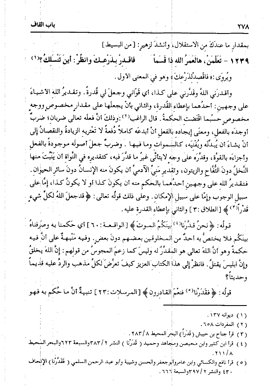 فتقدير الله على وجهين أحدهما بالحكم منه أن يكون كذا أو لا يكون كذا، إما على سبيل الوجوب وإما على سبيل الإمكان. وعلى ذلك قوله تعالى: {قد جعل الله لكل شيء قدرًا} [الطلاق: 3] والثاني بإعطاء القدرة عليه.