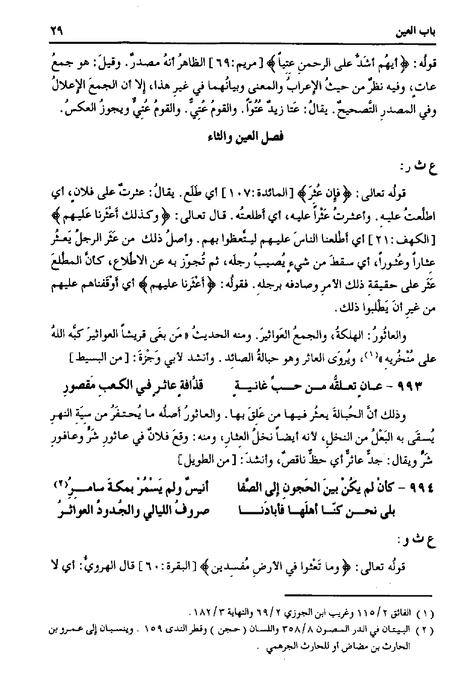 قوله تعالى:} فإن عثر {[المائدة: 107] أي طلع. يقال: عثرت على فلانٍ، أي اطلعت عليه. وأعثرت عثرًا عليه، أي أطلعته. قال تعالى:} وكذلك أعثرنا عليهم {[الكهف: 21] أي أطلعنا الناس عليهم ليتعظوا بهم. وأصل ذلك من عثر الرجل يعثر عثارًا وعثورًا، أي سقط من شيءٍ يصيب رجله، ثم تجوز به عن الإطلاع، كأن المطلع عثر على حقيقة ذلك الأمر وصادفه برجله. فقوله:} أعثرنا عليهم {أي أوقفناهم عليهم من غير أن يطلبوا ذلك.