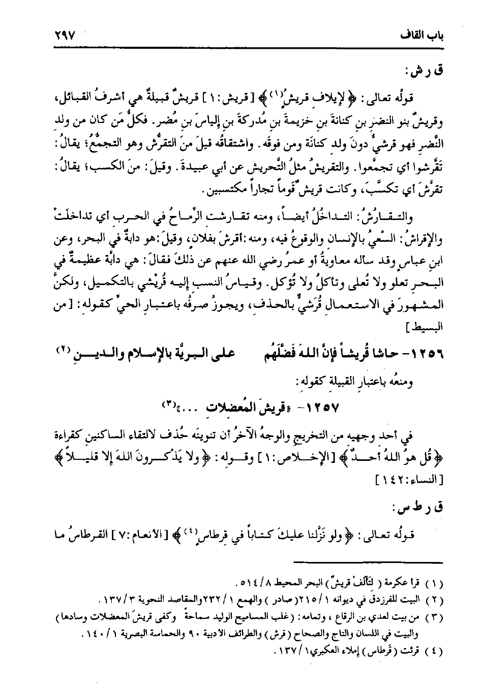 1256 - حاشا قريشًا فإن الله فضلهم ... علي البرية بالإسلام والدين.