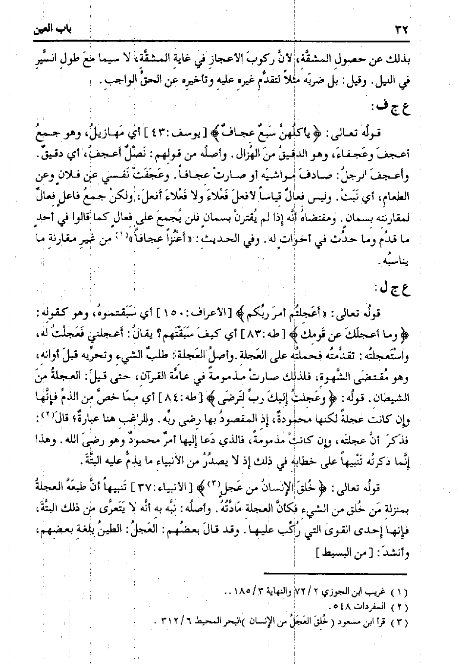قوله تعالى:} خلق الإنسان من عجلٍ {[الأنبياء: 37] تنبيهًا أن طبعه العجلة بمنزلة من خلق من الشيء فكأن العجلة مادته. وأصله: نبه به أنه لا يتعرى من ذلك البتة، فإنها إحدى القوى التي ركب عليها. وقد قال بعضهم: العجل: الطين بلغة بعضهم، وأنشد: [من البسيط]