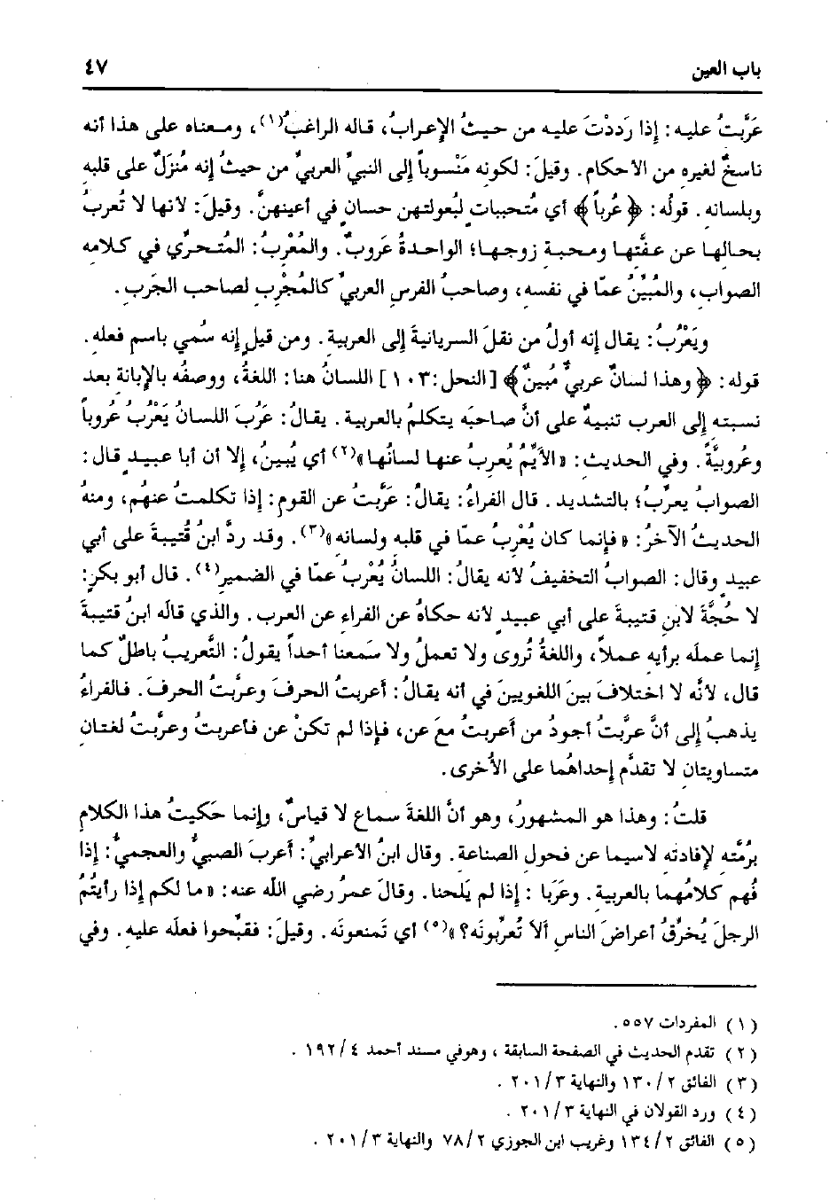 قلت: وهذا هو المشهور، وهو أن اللغة سماع لا قياس، وإنما حكيت هذا الكلام برمته لإفادته لاسيما عن فحول الصناعة. وقال ابن الأعرابي: أعرب الصبي والعجمي: إذا فهم كلامهما بالعربية. وعربا: إذا لم يلحنا. وقال عمر رضي الله عنه: "ما لكم إذا رأيتم الرجل يخرق أعراض الناس ألا تعربونه؟ " أي تمنعونه. وقيل: فقبحوا فعله عليه. وفي