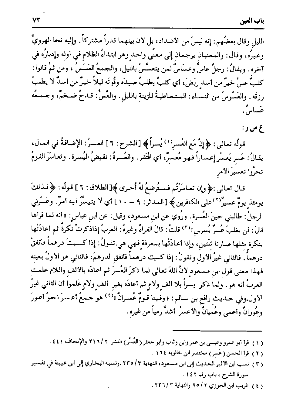 قوله تعالى:} إن مع العسر يسرًا {[الشرح: 6] العسر: الإضافة في المال، يقال: عسر يعسر إعسارًا فهو معسر، أي افتقر. والعسرة: نقيض اليسرة. وتعاسر القوم تحروا تعسير الأمر.