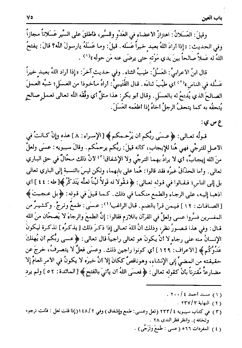 وقيل: العسلان: اهتزاز الأعضاء في العدو والسير، فأطلق على السير عسلانًا مجازًا وفي الحديث: "إذا أراد الله بعبدٍ خيرًا عسله. قيل: وما عسله يا رسول الله؟ قال: يفتح الله له عملاً صالحًا بين يدي موته حتى يرضى عنه من حوله".