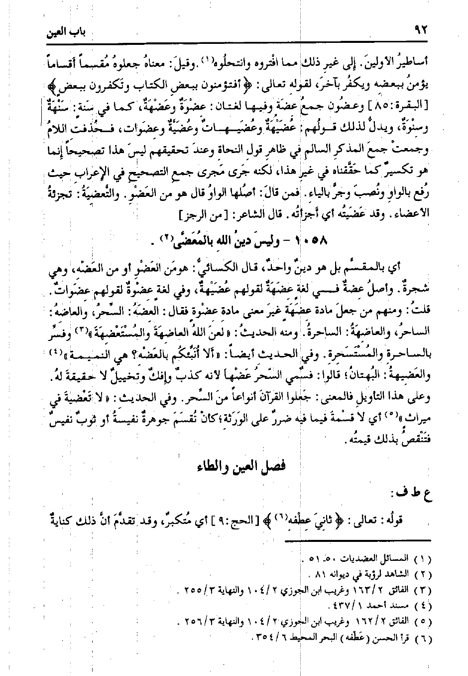 أي بالمقسم بل هو دين واحد، قال الكسائي: هو من العضو أو من العضه، وهي شجرة. وأصل عضة في لغة عضهة لقولهم عضيهة، وفي لغة عضوة لقولهم عضوات. قلت: ومنهم من جعل مادة عضهةٍ غير معنى مادة عضوةٍ فقال: العضة: السحر، والعاضه: الساحر، والعاضهة: الساحرة. ومنه الحديث: "لعن الله العاضهة والمستعضهة" وفسر بالساحرة والمستسحرة. وفي الحديث أيضًا: "ألا أنبئكم بالعضه؟ هي النميمة" والعضيهة: البهتان؛ قالوا: فسمي السحر عضها لأنه كذب وإفك وتخييل لا حقيقة له. وعلى هذا التأويل فالمعنى: جعلوا القرآن أنواعًا من السحر. وفي الحديث: "لا تعضية في ميراث" أي لا قسمة فيما فيه ضرر على الورقة؛ كأن تقسم جوهرة نفيسة أو ثوب نفيس فتنقص بذلك قيمته.