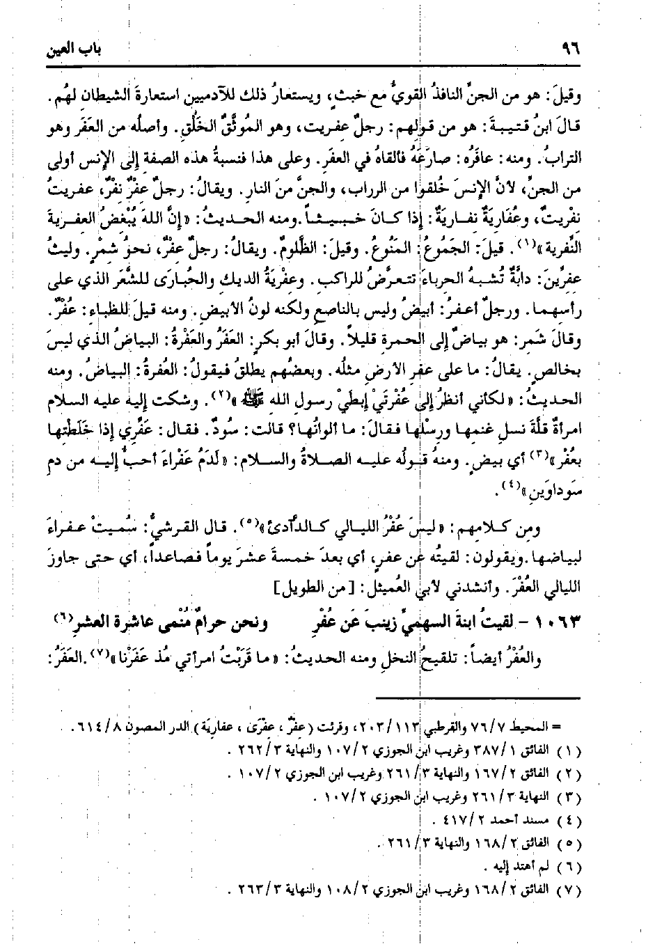 1063 - لقيت ابنة السهمي زينب عن عفر ... ونحن حرام منمى عاشرة العشر