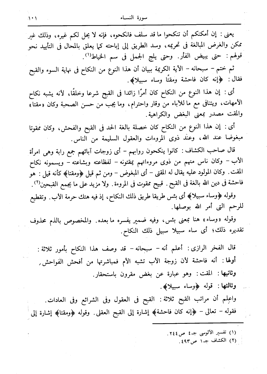 (1) تفسير الآلوسى ج 4 ص 244.