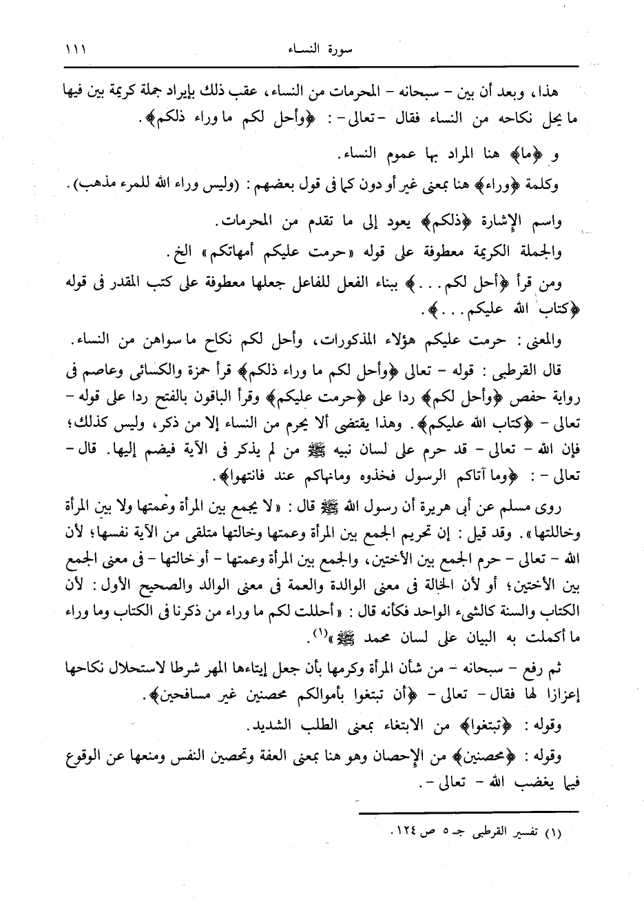 (1) تفسير القرطبي ج 5 ص 124.
