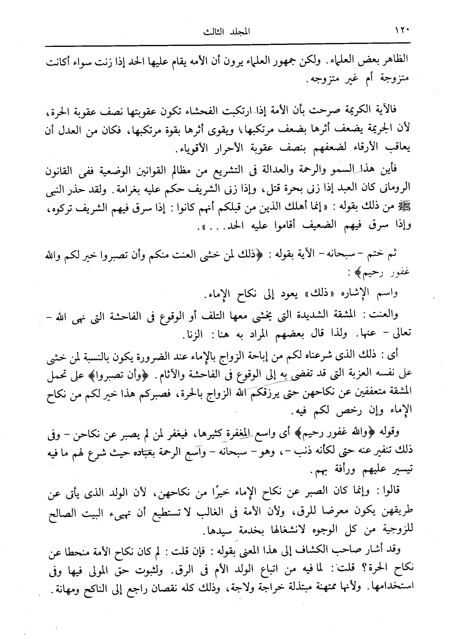 واسم الإشارة «ذلك» يعود إلى نكاح الإماء.