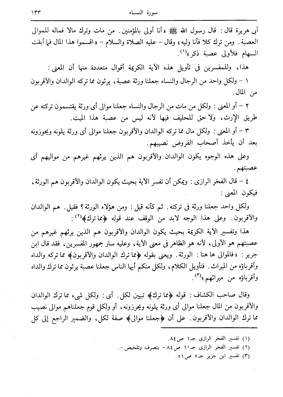 (3) تفسير ابن جزير ج 5 ص 51.