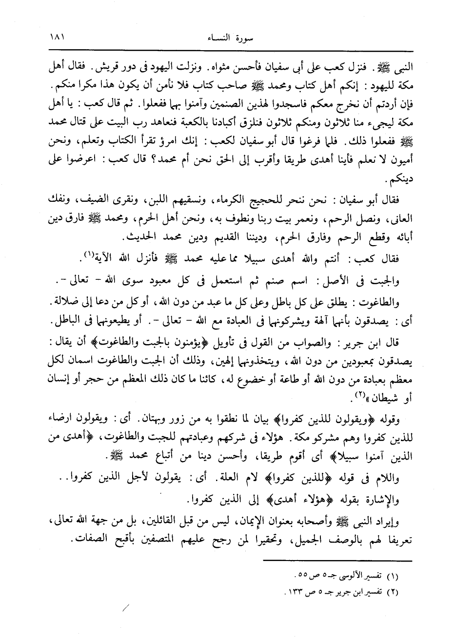 قال ابن جرير: والصواب من القول في تأويل يُؤْمِنُونَ بِالْجِبْتِ وَالطَّاغُوتِ أن يقال: