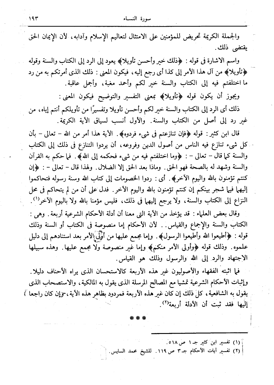 (2) تفسير آيات الأحكام ج 3 ص 119. للشيخ محمد السائس.