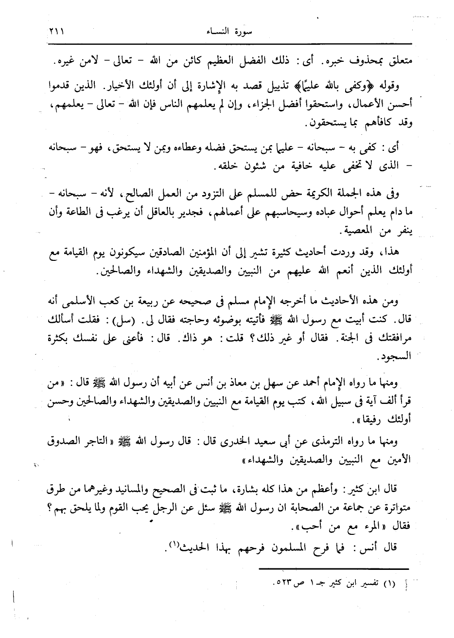 هذا، وقد وردت أحاديث كثيرة تشير إلى أن المؤمنين الصادقين سيكونون يوم القيامة مع أولئك الذين أنعم الله عليهم من النبيين والصديقين والشهداء والصالحين.