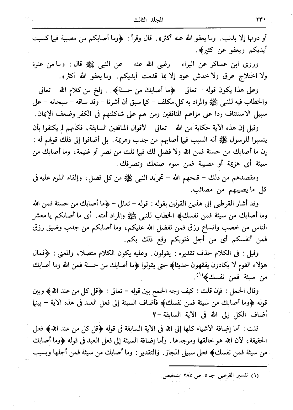 (1) تفسير القرطبي ج 5 ص 285 بتلخيص.