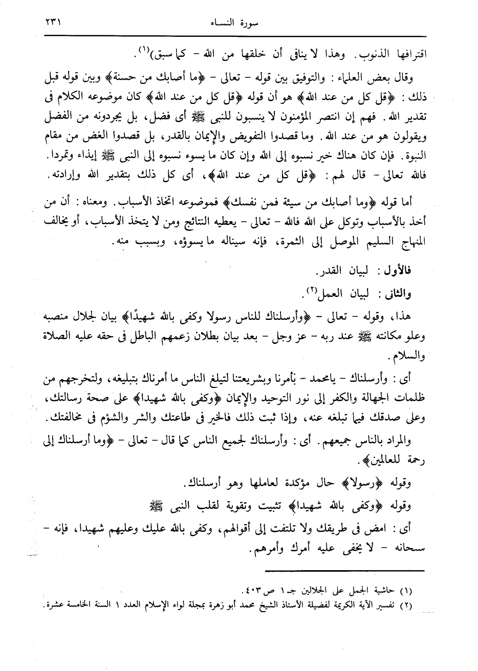 (1) حاشية الجمل على الجلالين ج 1 ص 403.