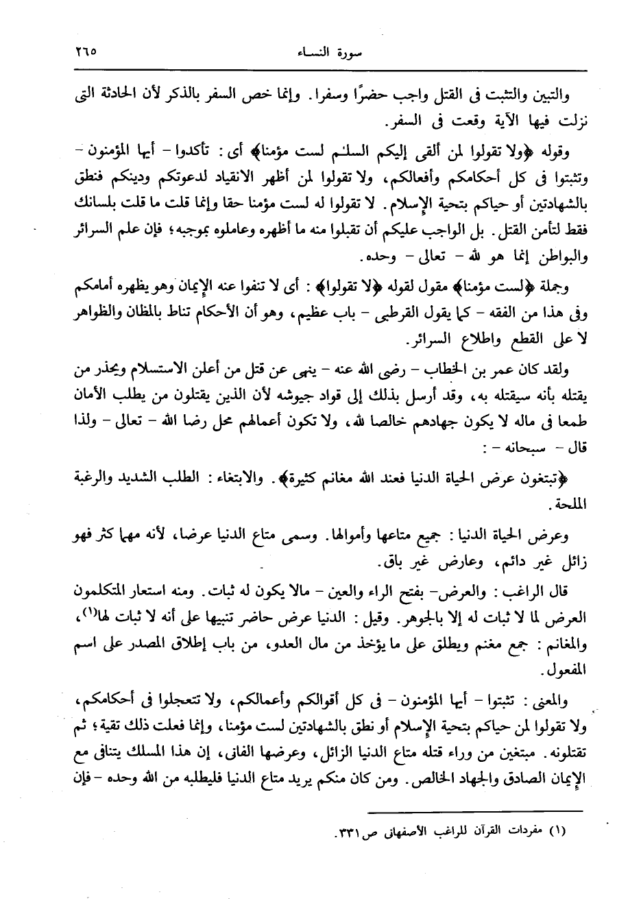 (1) مفردات القرآن للراغب الأصفهاني ص 331.