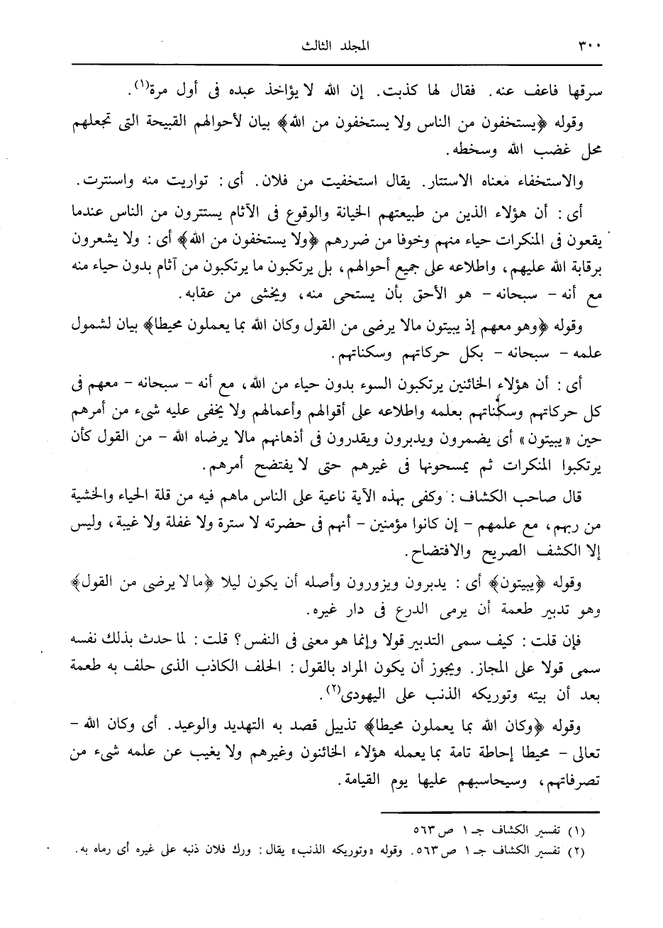 (2) تفسير الكشاف ج 1 ص 563. وقوله «وتوريكه الذنب» يقال: ورك فلان ذنبه على غيره أى رماه به.