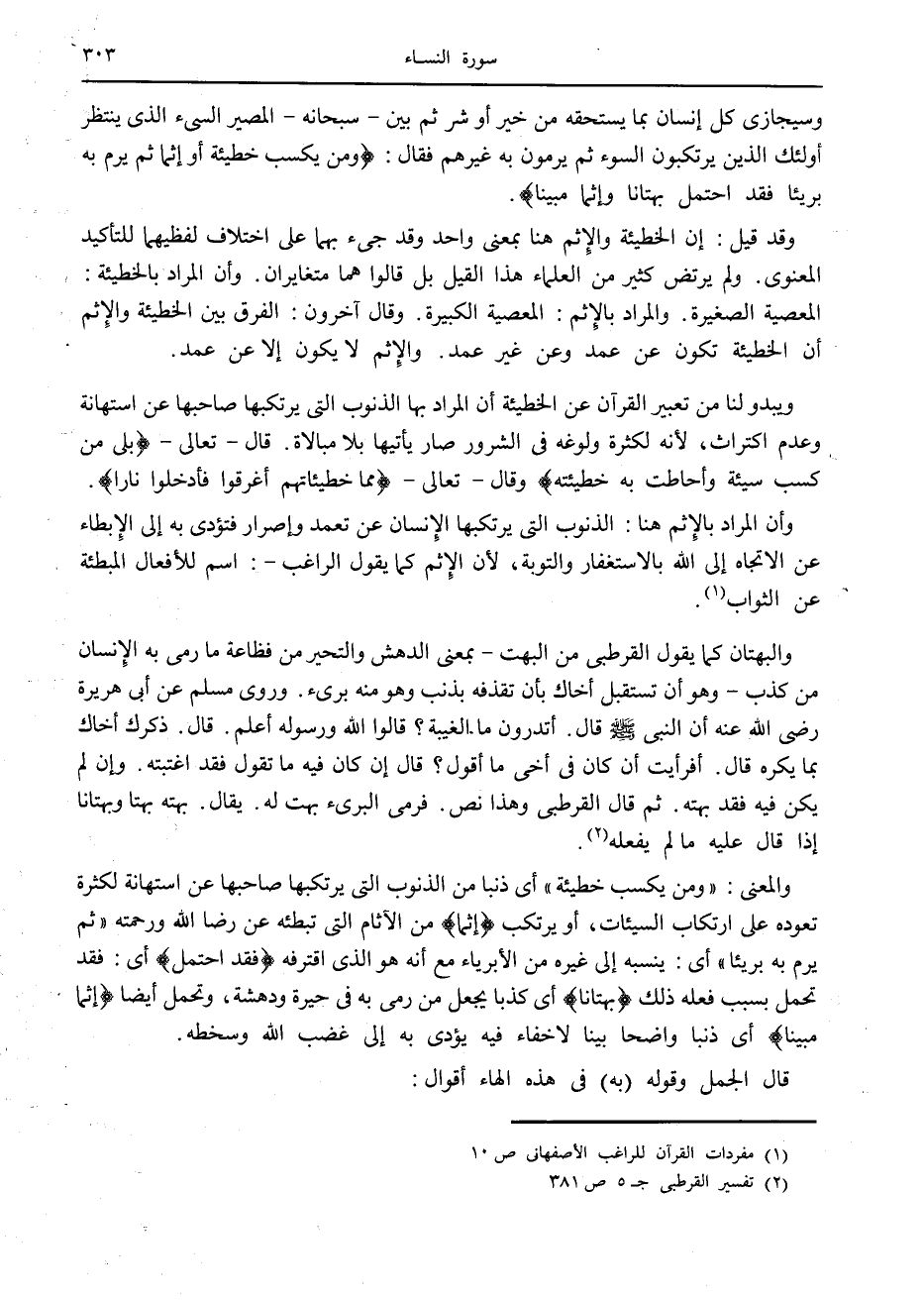 (2) تفسير القرطبي ج 5 ص 381
