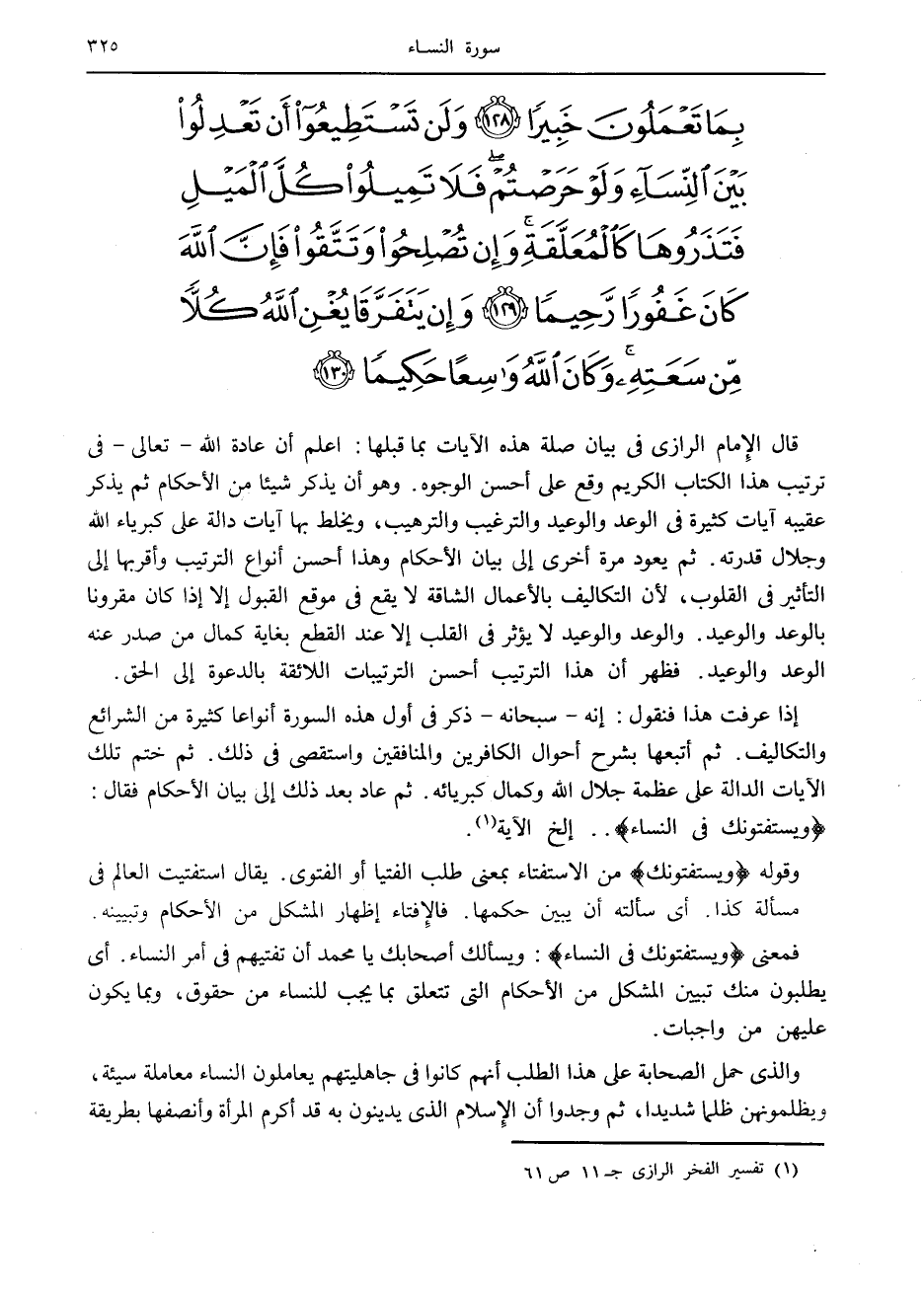 (1) تفسير الفخر الرازي ج 11 ص 61