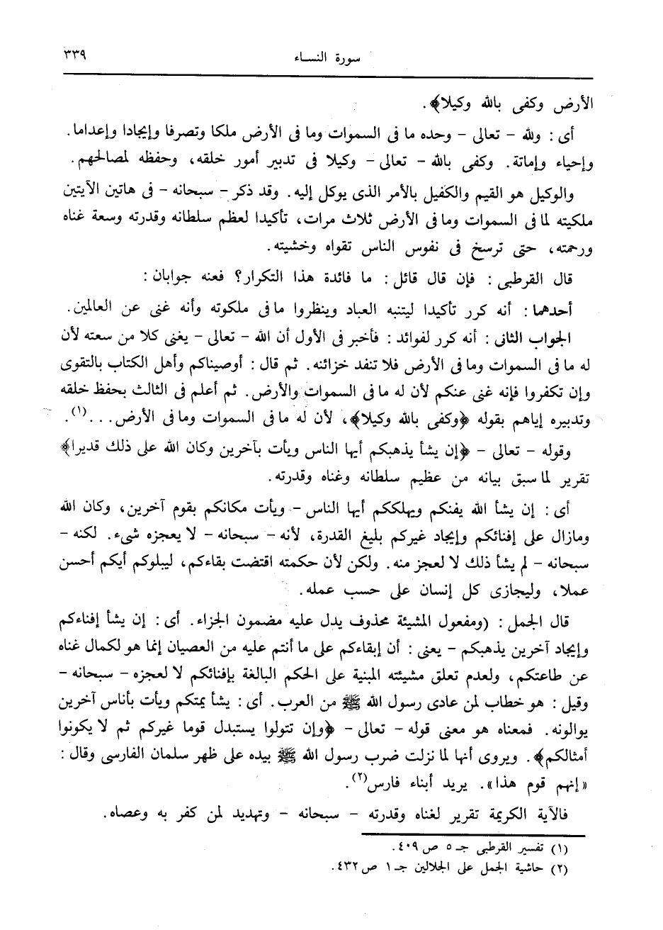 (2) حاشية الجمل على الجلالين ج 1 ص 432.