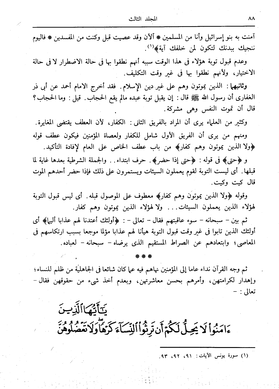 (1) سورة يونس الآيات: 91، 92، 93.