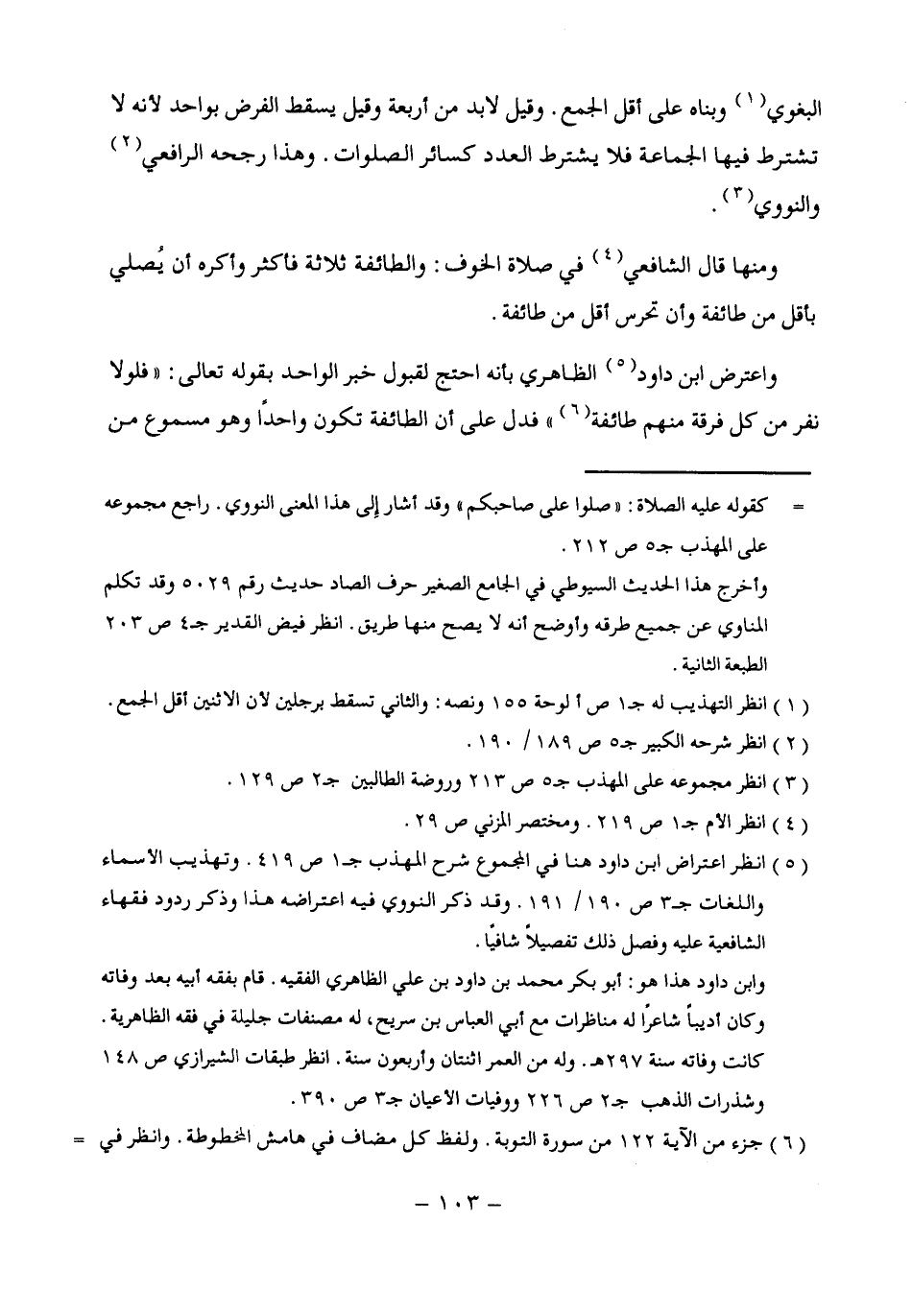 (¬5) انظر اعتراض ابن داود هنا في المجموع شرح المهذب جـ 1 ص 419. وتهذيب الأسماء واللغات جـ 3 ص 190/ 191. وقد ذكر النووى فيه اعتراضه هذا وذكر ردود فقهاء الشافعية عليه وفصل ذلك تفصيلًا شافيًا.