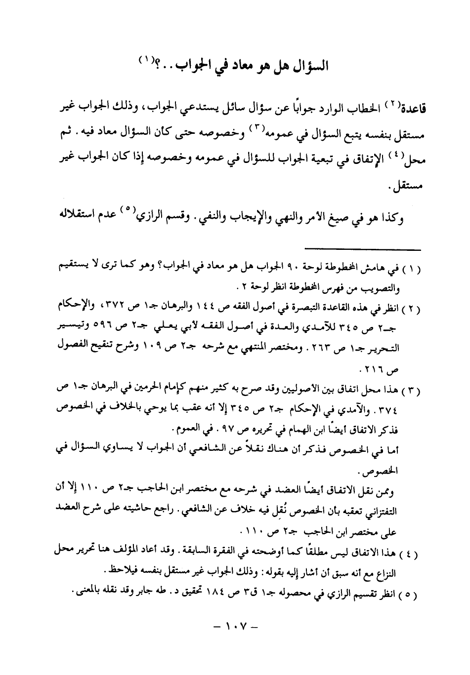 (¬4) هذا الاتفاق ليس مطلقًا كما أوضحته في الفقرة السابقة. وقد أعاد المؤلف هنا تحرير محل النزاع مع أنه سبق أن أشار إِليه بقوله: وذلك الجواب غير مستقل بنفسه فيلاحظ.
