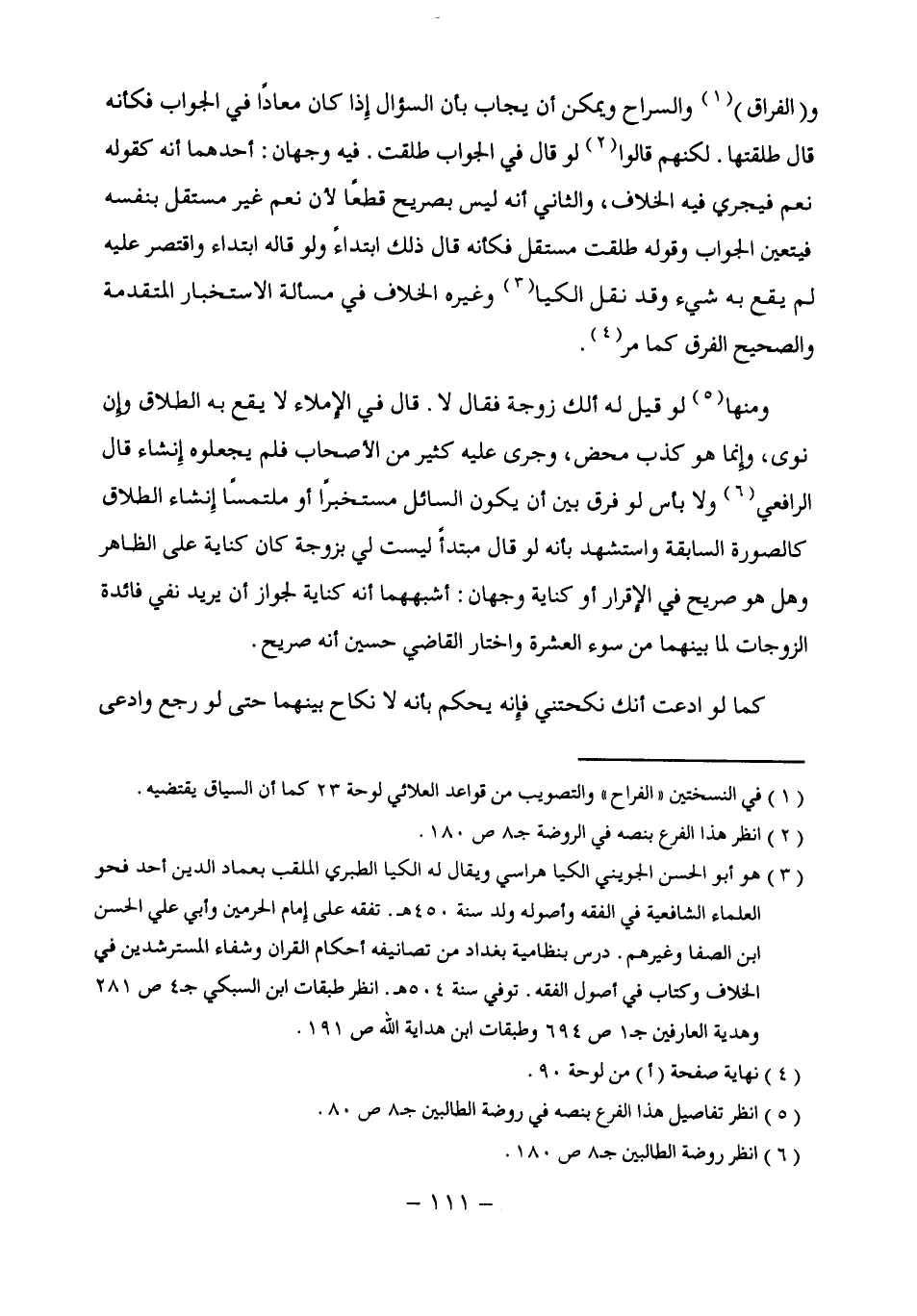 (¬2) انظر هذا الفرع بنصه في الروضة جـ 8 ص 180.