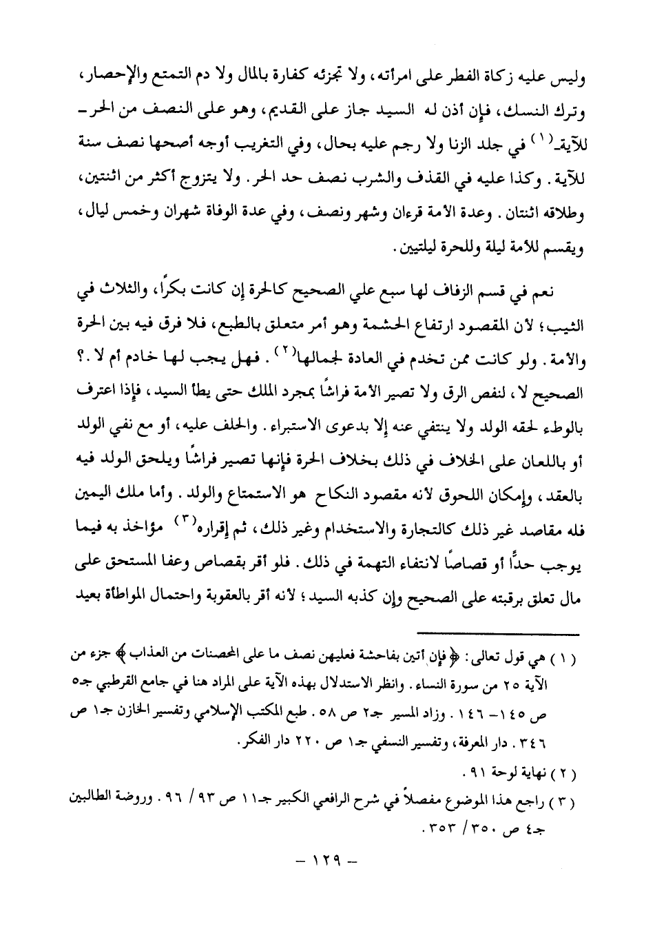 (¬1) هي قول تعالى: {فَإِنْ أَتَيْنَ بِفَاحِشَةٍ فَعَلَيْهِنَّ نِصْفُ مَا عَلَى الْمُحْصَنَاتِ مِنَ الْعَذَابِ} جزء من الآية 25 من سورة النساء. وانظر الاستدلال بهذه الآية على المراد هنا في جامع القرطبي جـ 5 ص 145 - 146. وزاد المسير جـ 2 ص 58. طبع المكتب الإسلامي وتفسير الخازن جـ 1 ص 346. دار المعرفة، وتفسير النسفي ج 1 ص 220 دار الفكر.