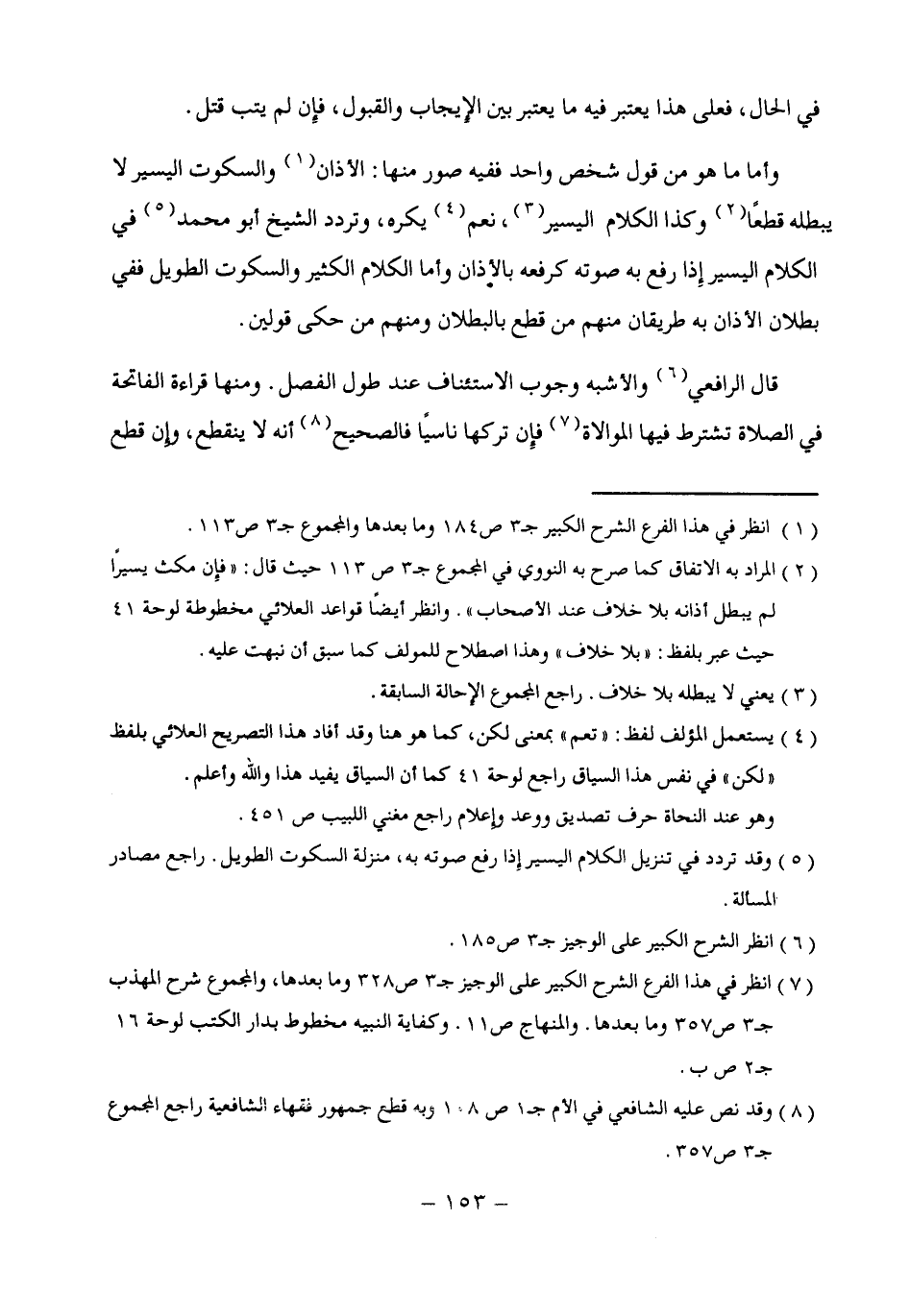 (¬5) وقد تردد في تنزيل الكلام اليسير إِذا رفع صوته به، منزلة السكوت الطويل. راجع مصادر المسألة.