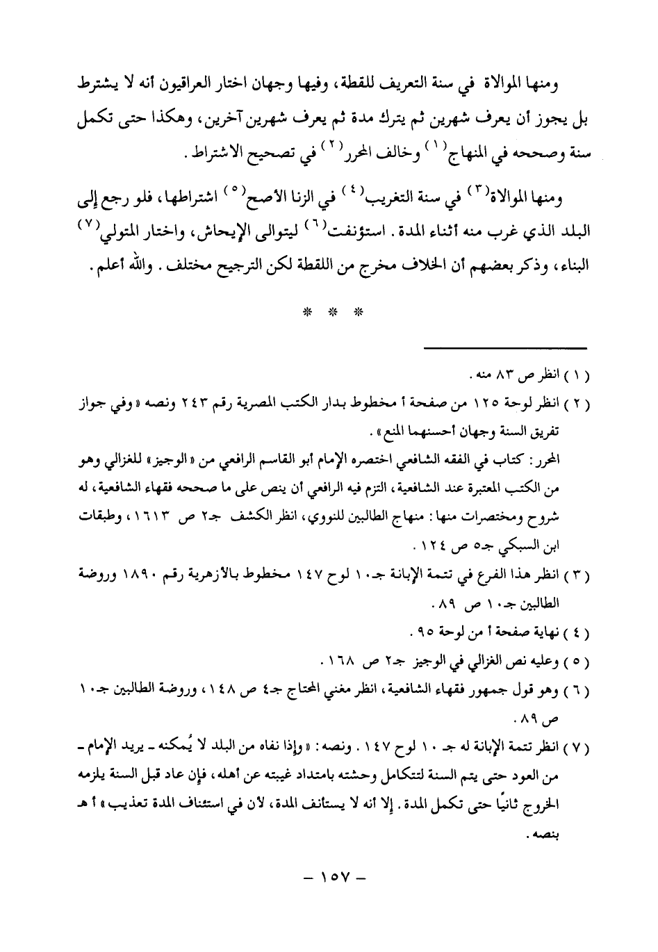 (¬3) انظر هذا الفرع في تتمة الإِبانة ج 10 لوح 147 مخطوط بالأزهرية رقم 1890 وروضة الطالبين جـ 10 ص 89.