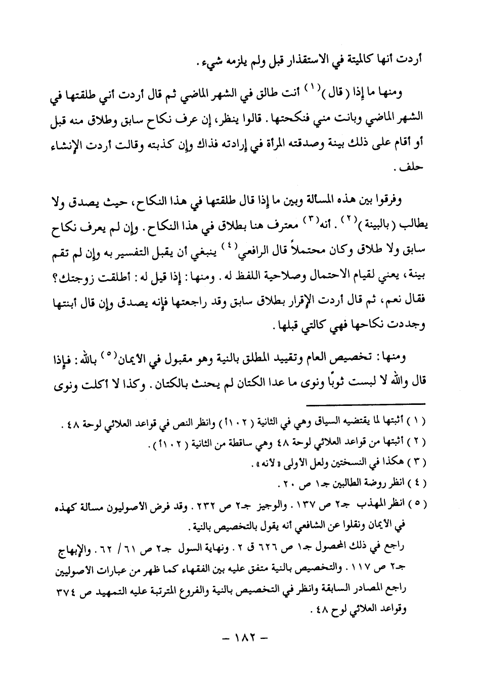 (¬5) انظر المهذب جـ 2 ص 137. والوجيز جـ 2 ص 232. وقد فرض الأصوليون مسألة كهذه في الأيمان ونقلوا عن الشافعي أنه يقول بالتخصيص بالنية.